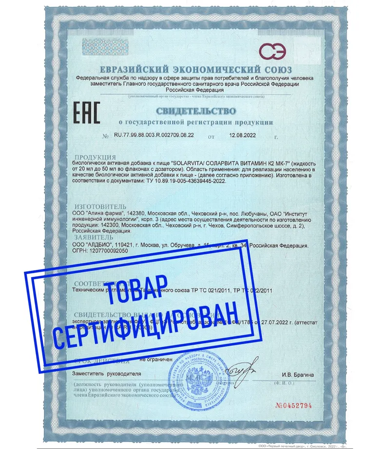 Свидетельство о государственной регистрации № RU.77.99.88.003.R.002709.08.22 от 12.08.2022 г.