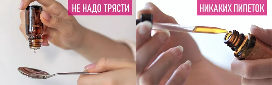 Удобно принимать нажимая на кнопку помпы-дозатора и капать в рот на язык.